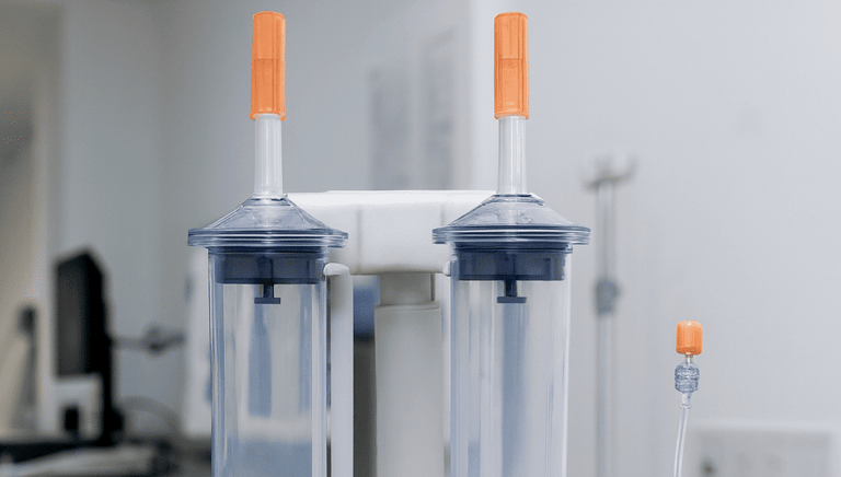 Jeringa estéril diseñada para inyectores automáticos de medios de contraste en estudios de imagenología